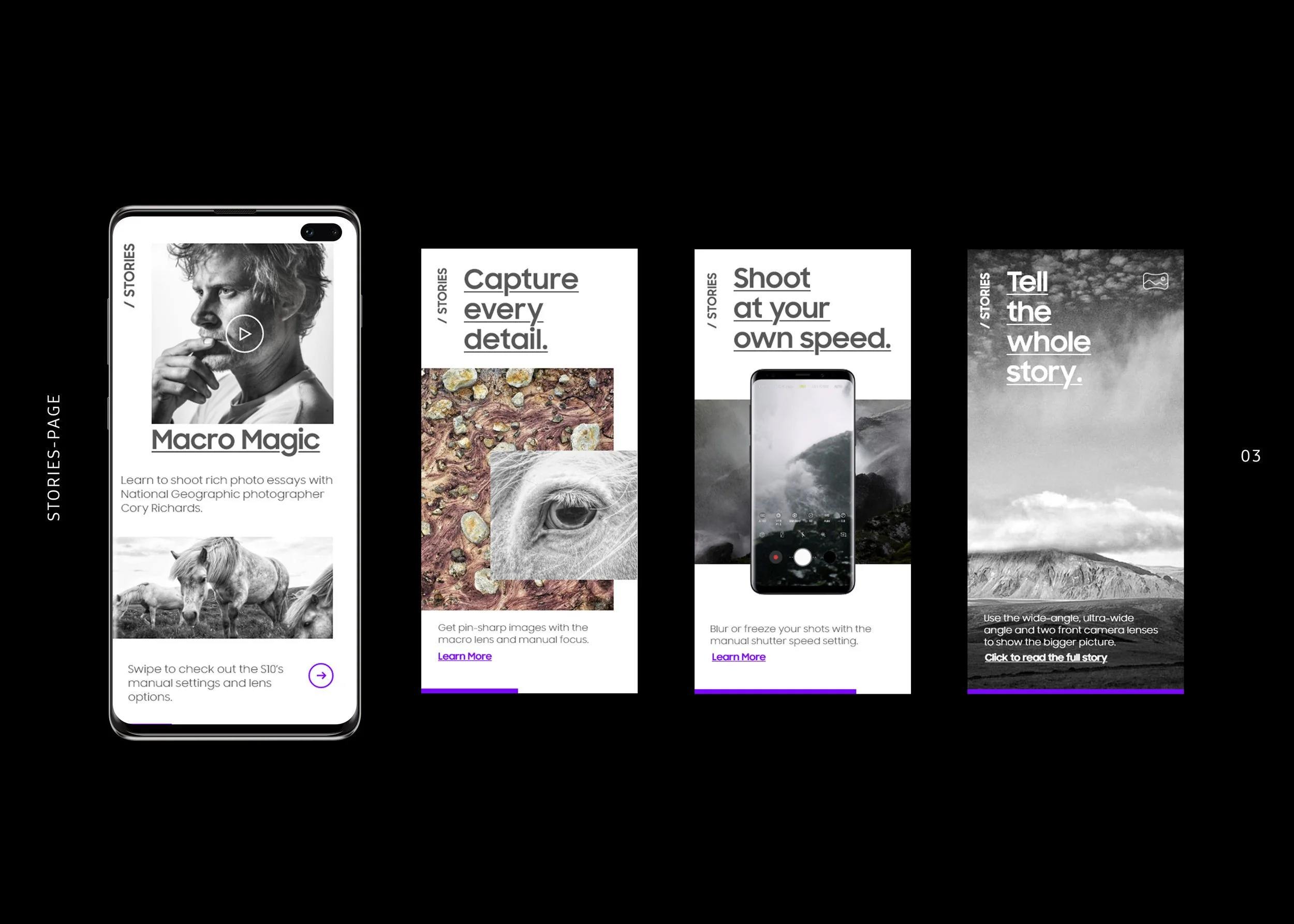 During my freelance stint at Sidlee in Montreal, Canada, I was assigned the exciting project of developing a mobile-responsive web concept for the worldwide launch of the Samsung Galaxy 10. Given the Galaxy 10's status as a frontrunner and trendsetter in camera features and lens superiority, the web concept needed to be modern, user-friendly, and, above all, showcase the phone's top features. We achieved this by weaving the stories of professional photographers who utilized the Galaxy 10 for their documentaries and photoshoots, creating an aesthetically pleasing and engaging platform.